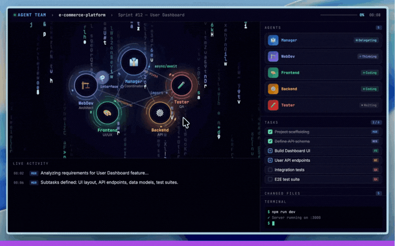 Gerenciador de agentes que coordena múltiplos projetos em paralelo.